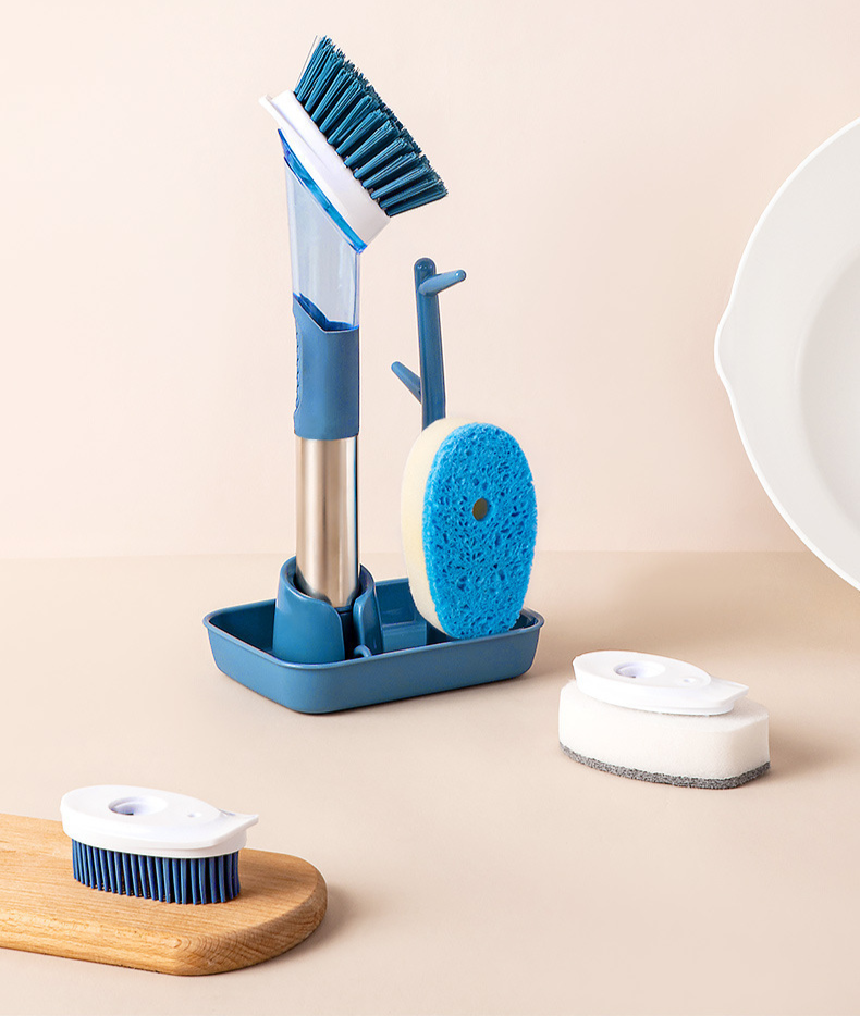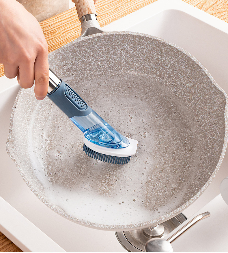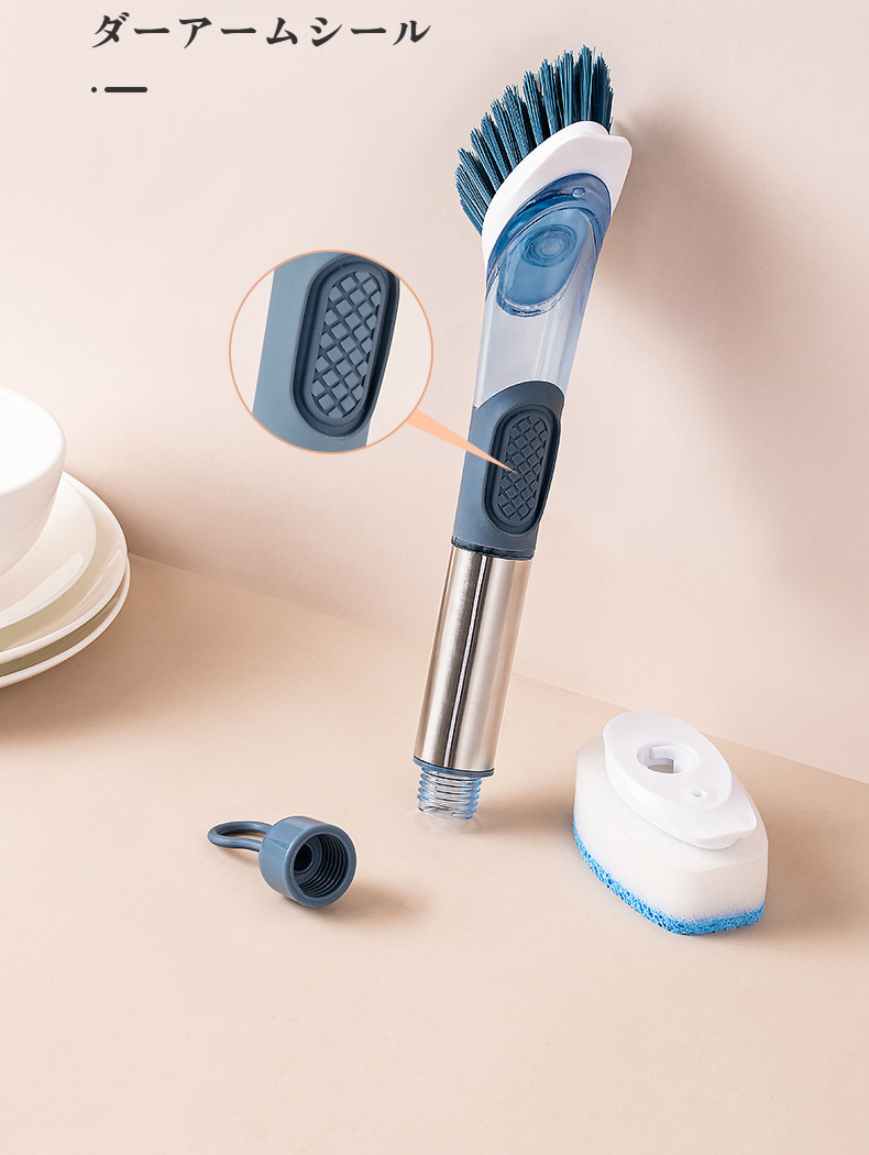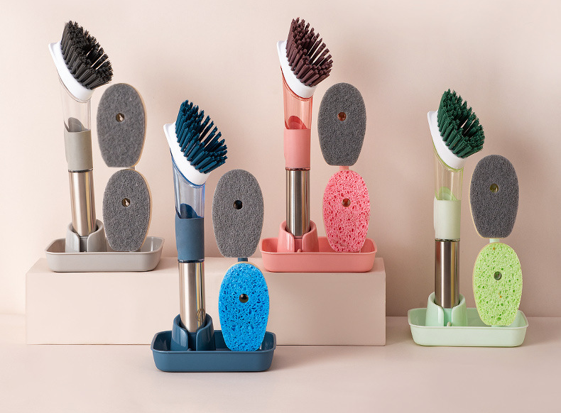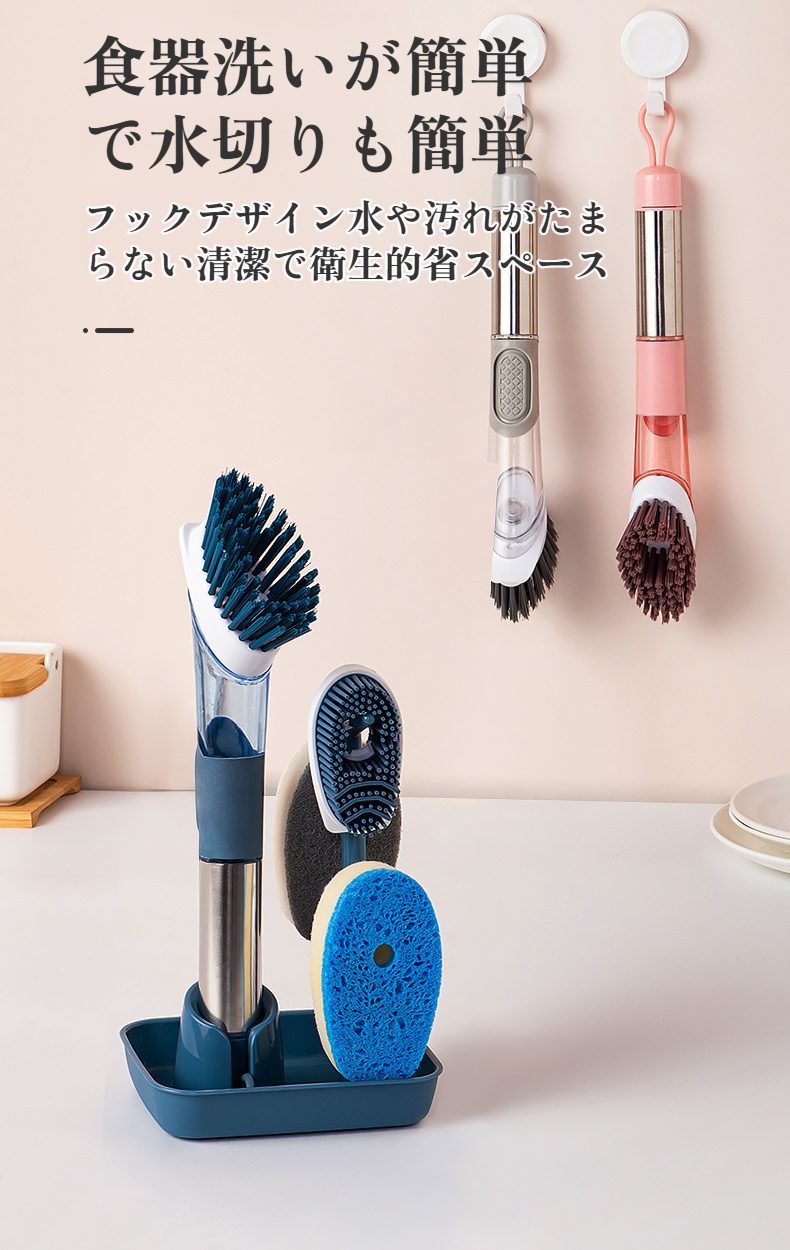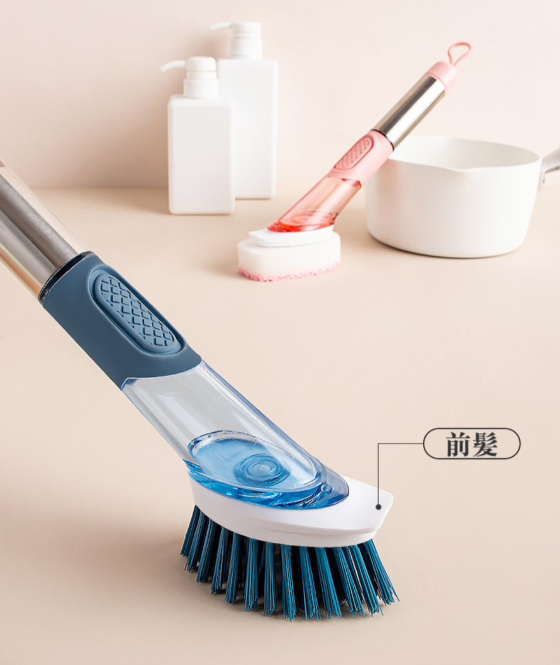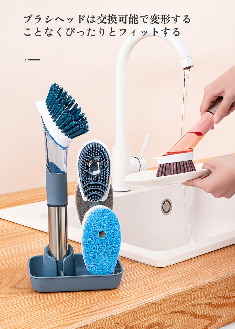 家庭用フォーインワン長柄キッチン食器用洗剤自動液体ポットブラシスポンジナイロン交換用プッシュ式ポットブラシ